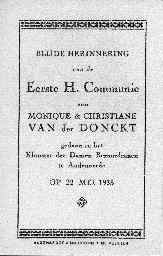 Naissance : 24 juillet 1927 Première communion : 22 mai 1935 à Oudenaarde 9700